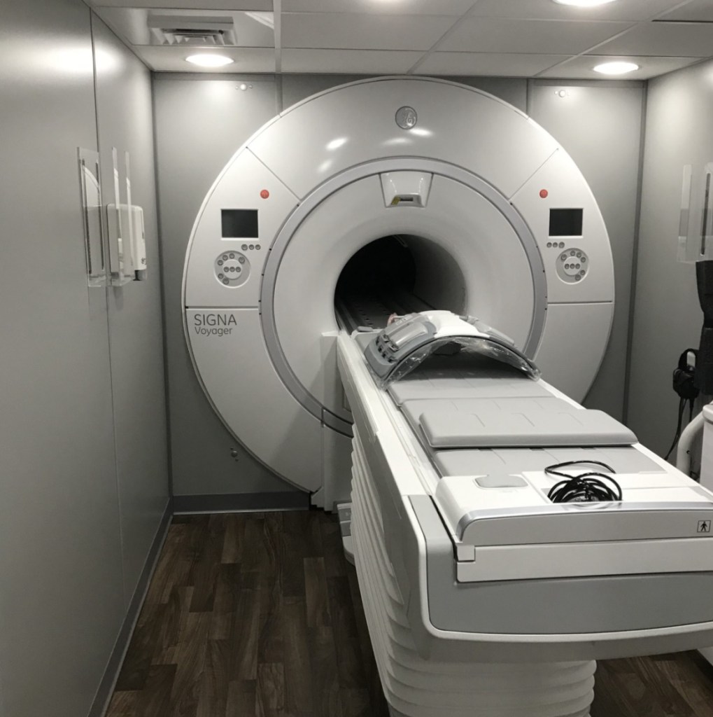 Summer was a young woman, late twenties I thought, though I am perhaps a poor judge of age in these situations. She was very slender and pale with dark hair and lots of tattoos visible wherever her scrubs didn’t conceal them. She had a very casual and familiar energy about her, which my normal self would have appreciated very much. On this particular day it cost me extra energy to make up the difference, and so despite her being a sweetheart, I was left slightly annoyed. *Why is she so happy?* I thought to myself while some other part of me answered *Don’t be an asshole!* I managed a smile back at her greetings and questions through semi-automated responses. “Should I let you use the restroom before we get started?” Summer cheerily offered. Yep. I nodded. The answer to that question was always yes lately. Drinking lots of water to flush all the chemicals through your body has that effect. Combine it with being in pain or cold and not wanting to move from your comfortable spot and you have a recipe for constant disappointment. I stopped by the restroom and reunited with Summer who had already started to lead the way to the back of the building. We passed room after room, not stopping at any of them. Hung a left and passed some more, then down a darkening hallway. Where the hell are we going? Summer flashed a key fob at a pad on the wall and pushed through the door. All of a sudden we were flooded with an incredible light from the room beyond. Almost blinding…it was daylight. We were outside for some reason, but the reason quickly became apparent as she turned the corner and I saw a trailer with RadNet Imaging Network printed on the side. I had noticed these on the drive into the parking lot, but never imagined that they contained millions of dollars in medical equipment. I thought maybe they were storage containers for extra catheters or something. Dead wrong. She walked me up the steps finally breaking her silence “Welcome to your private suite!” So cheery.
